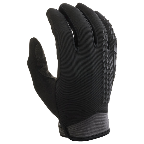 Listening to the needs the Yeti / Fox Factory race team members looking for more meat on the bone, the Maverick all-new design features thermoplastic rubber molded protection. Adjustable hook/loop closure, AX Suede palm, rubberized finger tips, and nose wipe thumbs make the Maverick one of the most feature-rich gloves in the line. New palm fabrics use recycled polyester (RPET) with a water based manufacturing process and solvent-free dyes.